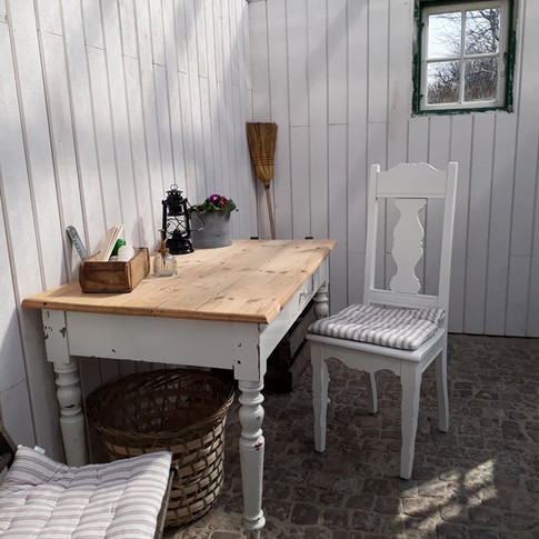 Dertil har vi en masse krydderurter, bærbuske og frugttræer.
